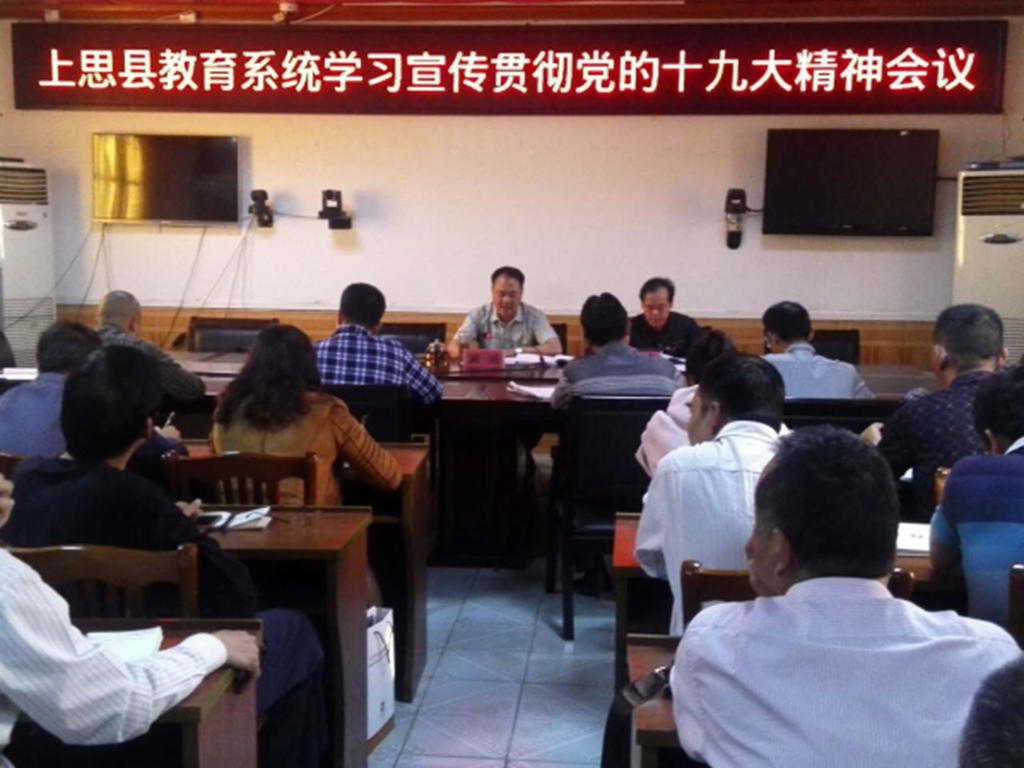 11月3日下午,上思县教育局党组书记、局长黄活组织召开上思县教育系统学习宣传贯彻党的十九大精神会议。