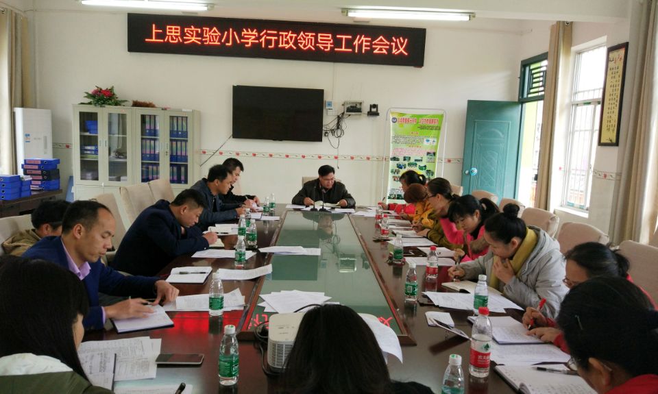 为保证新学期各项教育教学工作正常开展,教学秩序有条不紊,为师生营造一个良好的教学环境,2018年2月23日上午9点,上思县实验小学在学校中型会议室召开了新学期开学前行政工作会议。会议由梁护兴校长主持,学校全体行政人员参加了此次会议。