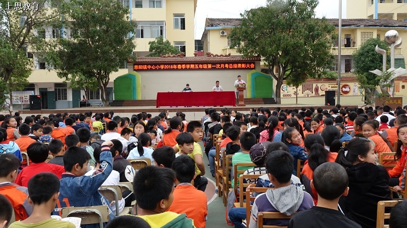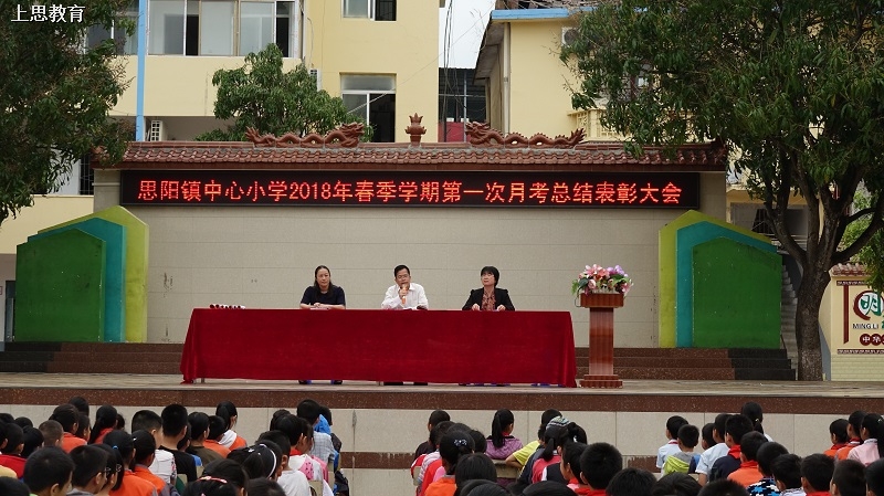 为了总结成绩,表彰先进,使下一步教育教学工作取得更好成绩,上思县思阳镇中心小学于2018年4月11日上午在学校操场举行了四、五年级月考总结表彰会。