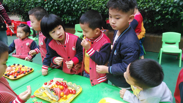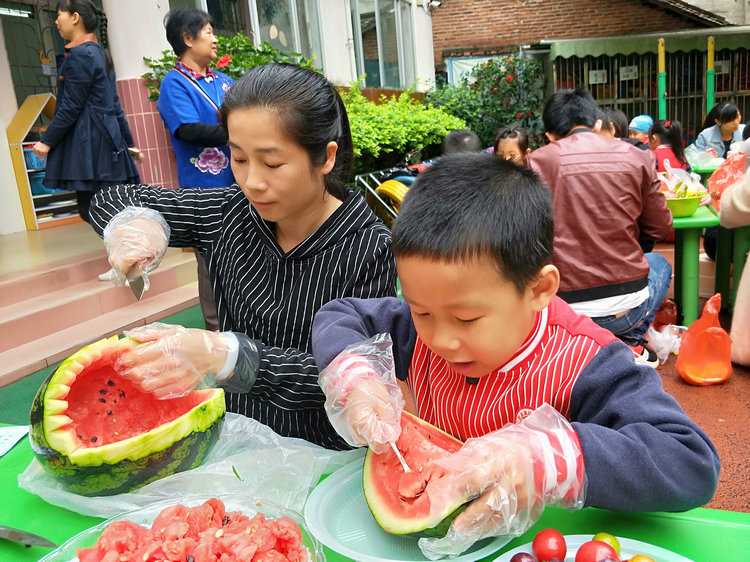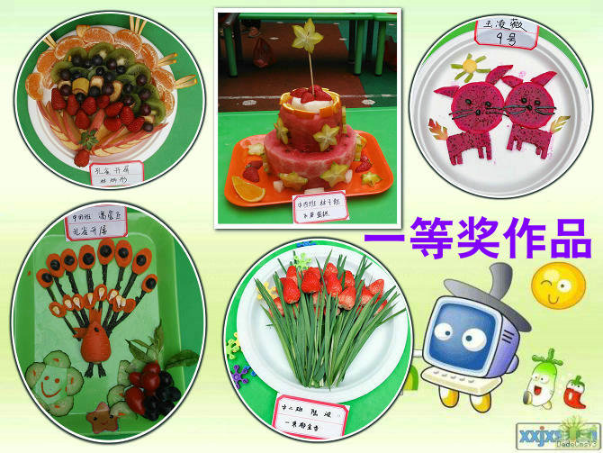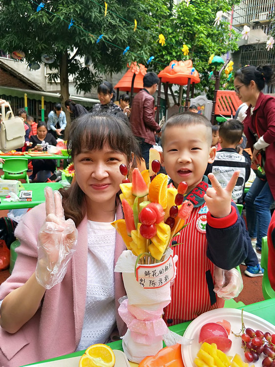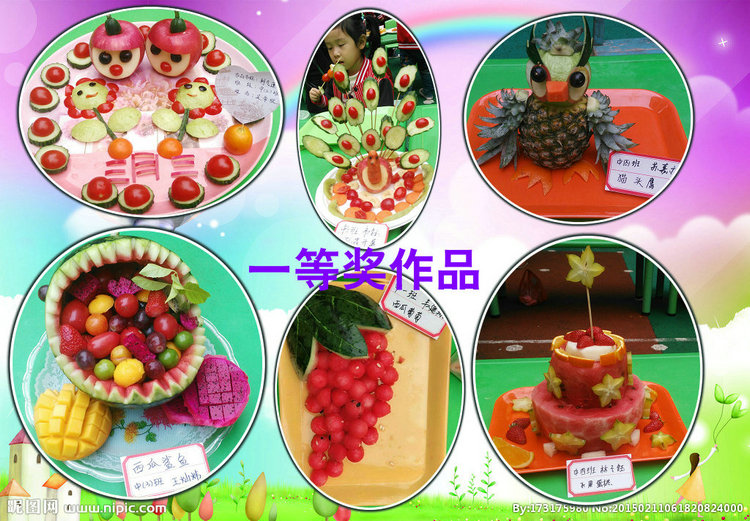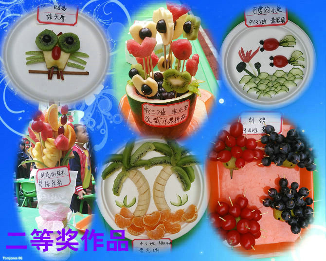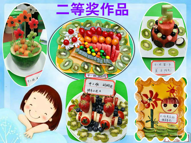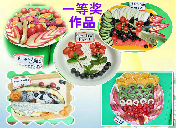 乐曲悠扬,我们用创意的水果描绘成长。今天,心情荡漾,我们用灵巧的双手雕铸辉煌。我们一起来分享每个亲子组香甜可口,美观诱人的水果拼盘。