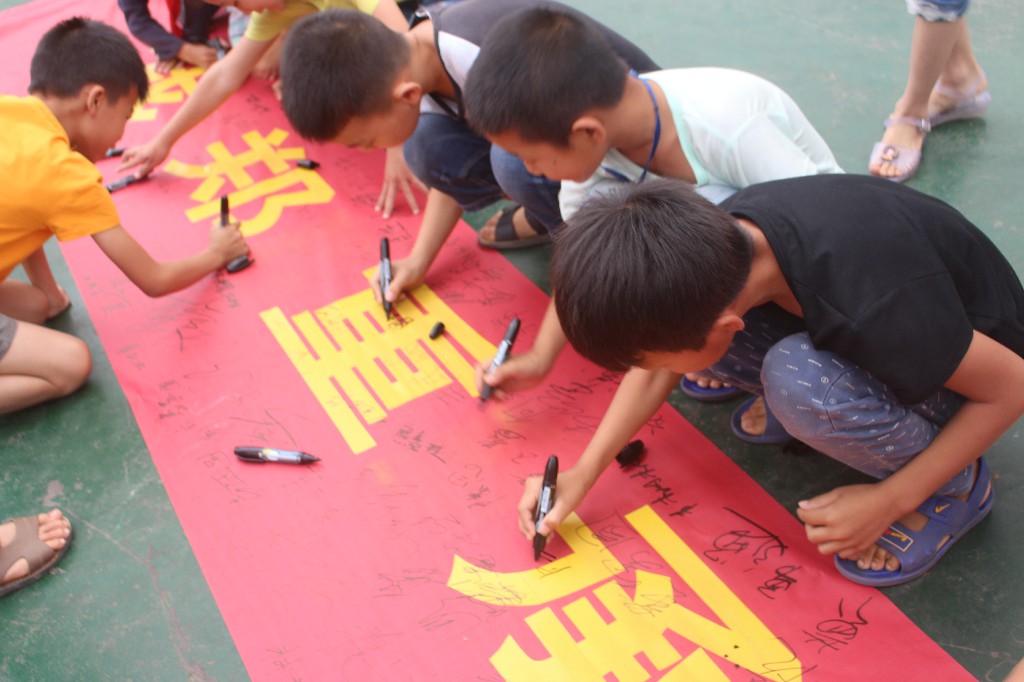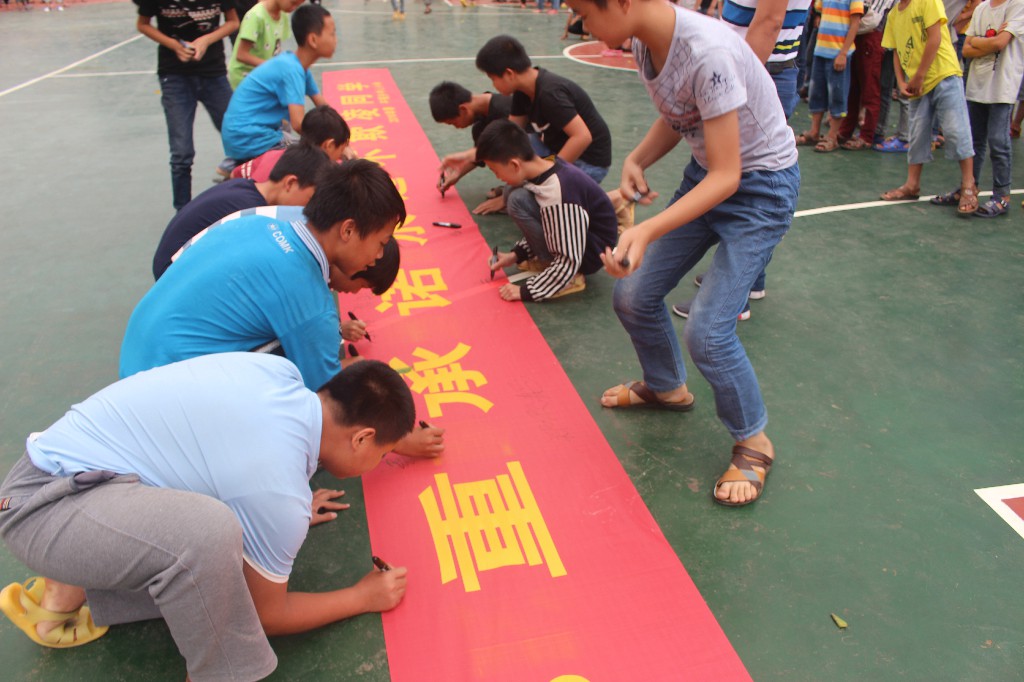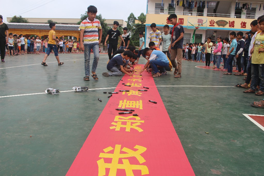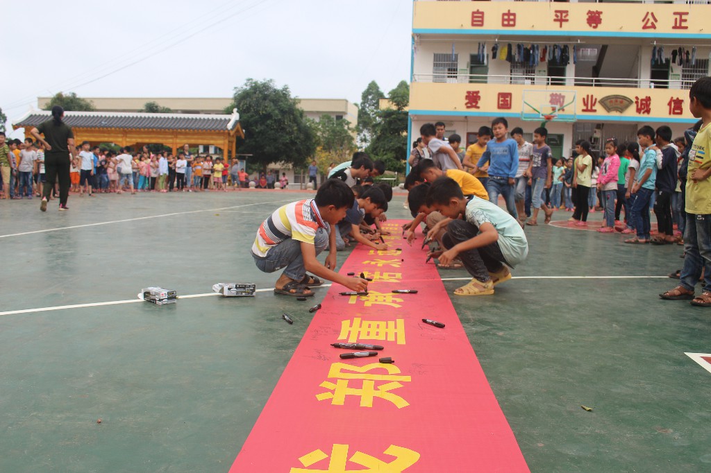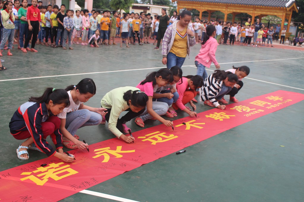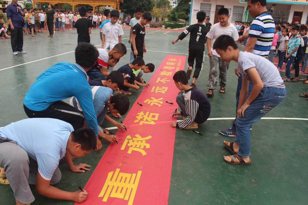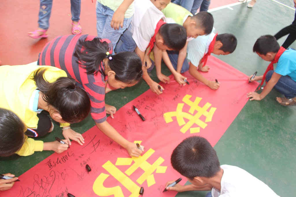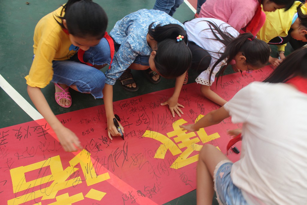 ????在签名仪式上,大队部辅导员向全体师生发起倡议,号召全校学生要与人为善,互相帮助,远离欺凌,不以大欺小,不以强欺弱,加强自我保护意识。随后,全校师生进行了郑重的签名。最后, 施万里副校长 要求老师要关心、关注学生,加强对学生的教育管理,切实增强反校园欺凌的意识,引导学生树立正确的人生观、价值观,从根源上杜绝校园欺凌现象的发生;要求全体学生履行承诺,践行小学生守则,做一名文明有礼的小学生。
