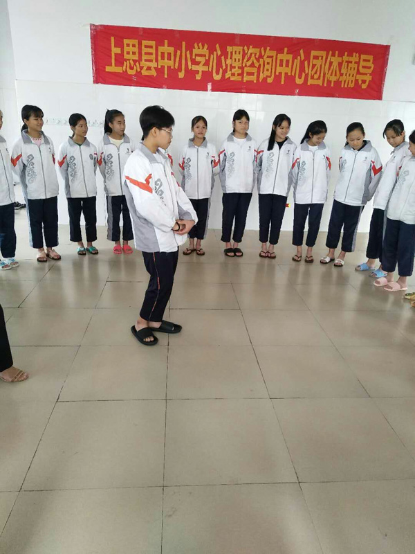 2018年6月3日上午八点,上思县中小学心理咨询中心刘娟秀老师带领三位助教:刘逢庆老师、孙素莹老师、吴春林老师来到上思中学附中初二(1)班一起做团辅。