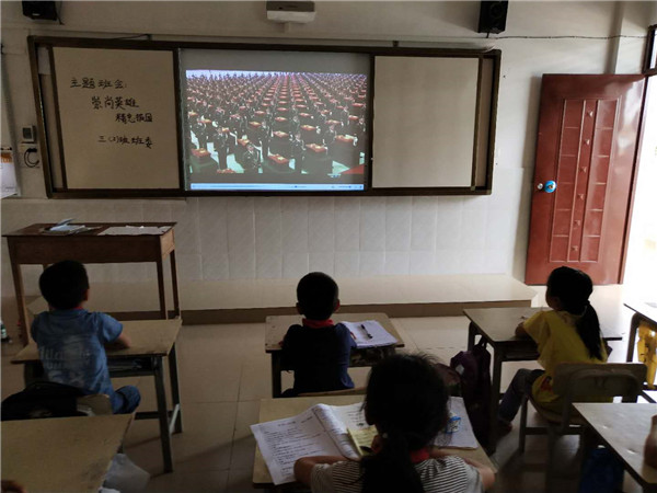 各班组织学生收看了《崇尚英雄 精忠报国》宣传片,让学生感受到英雄的信仰、坚守与情怀。通过鲜活的英雄人物事迹,引发了学生对英雄精神的崇敬,让学生感受到英雄就在大家身边。