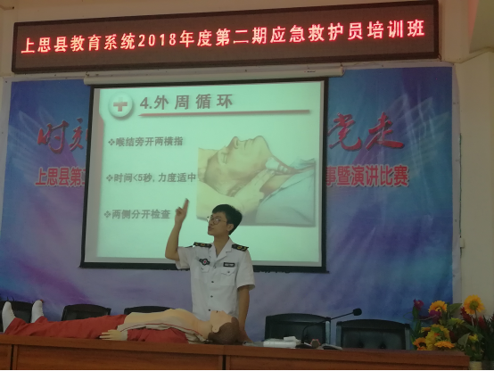 感谢县教育局、县红十字会提供这样的培训机会。通过这次急救培训,大家掌握了基本急救、自救、互救的技能知识和关键性的初级救助实践操作,大大提高了在面对意外事故和危重病发生时的应急能力,相信今后我们可以很好的应对突发事件。我们一定会知道该怎么做,不会对伤者造成更大的危害,相信在紧急时刻这些知识能够拯救自己和他人的性命。