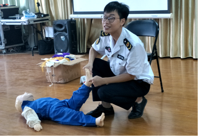 此外,老师还主要给我们介绍了心肺复苏(CPR)和创伤救护五项技能。最后,培训师指导我们进行心肺复苏和包扎的训练,通过专业老师的指导,我们对CPR和包扎有了深入的了解,也基本掌握了初级急救技能。