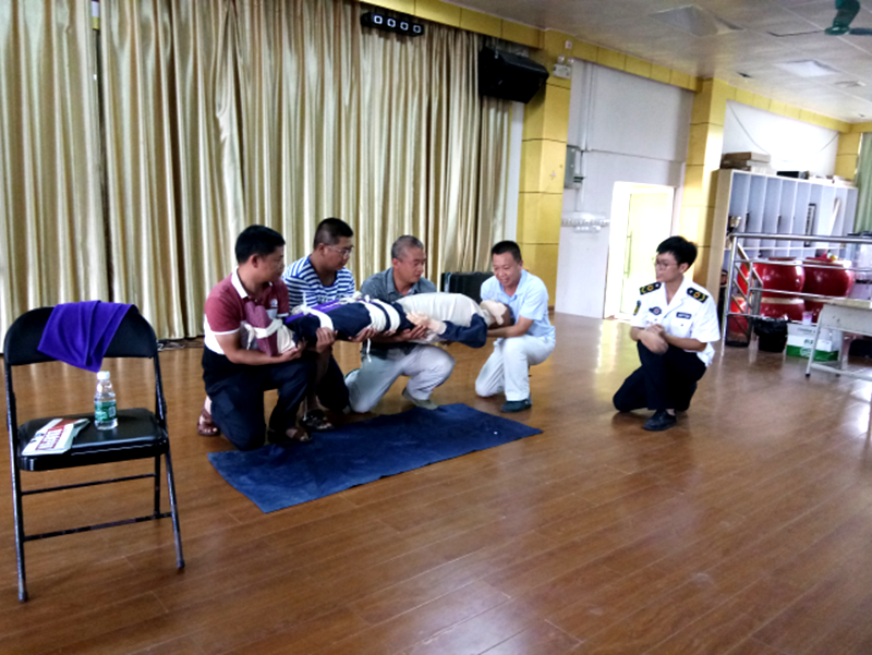 在这次的应急救护员培训活动,我们主要学习了“救护新概念、心肺复苏、创伤救护及常见急症、突发重大意外事故的现场救护”等很多有用的知识和技能。裴老师先给我们做了理论知识的讲解,他以通俗易懂、风趣幽默的语言向我们详细讲解了心肺复苏、创伤救护等常见急症、意外伤害的救护原理及技术手段,同时介绍了常见急症与突发重大意外事故的现场救护等处理方法。裴老师告诉我们必须要知道生命要素—循环体征,它主要包括心跳、呼吸和意识。我们必须要知道成人、儿童正常的心跳速率和呼吸速率,还要懂得通过观察人的眼睛和手脚来判断伤者的状况。进入现场必须要做的四件事:评估现场、保障安全、紧急呼救、实施救护。在救护过程中要坚持“救人不舍已,见义要自维”的原则,我们还应该记住“先救命,后治伤”。与生命赛跑我们需要勇气和智慧,只有正确地把握救护时间,我们才能赢得更多宝贵的生命!