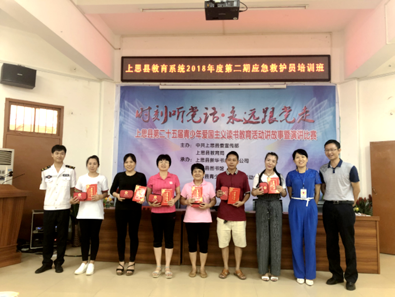 为了切实保障学校在突发事件后,能立足于现场,对受害师生实施及时、有效的初步救护,减轻对师生生命的伤害,降低学校财产损失。2018年6月12日至13日,在上思县青少年学生校外活动中心举办全县教育系统应急救护员2018年第二期培训班。这次培训由上思县教育局、上思县红十字会主办,参培人员主要是我县各校的德育处主任、少先队辅导员或团委书记等48名学员,由德育办苏日享副主任担任本次培训班的班主任。