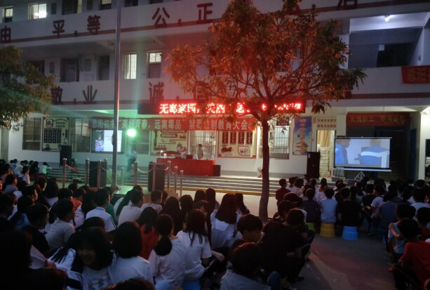 ? 活动二:6月14号晚,我校有幸邀请到了上思县人民法院工作人员到我校开展“无毒家园,美丽上思”禁毒法制教育大会。大会由刑事审判庭员额法官,中南财经政法大学研究生冼春瑜进行主讲。