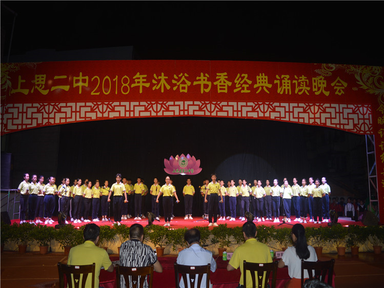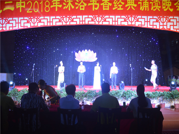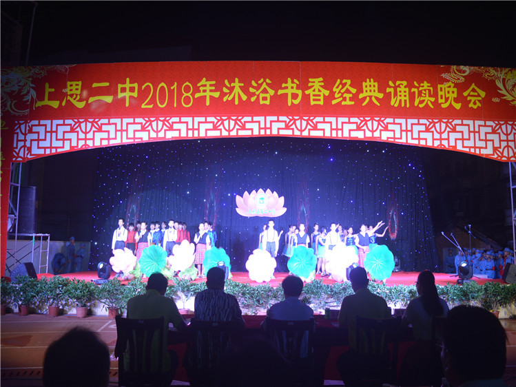 ? ? ?为了深入实施素质教育,创建良好的校园文化,营造浓郁的读书氛围。我校隆重举办了 “沐浴书香经典诵读”晚会,旨在激发师生读书的兴趣与热情,让每一位师生都亲近书本,喜爱读书,学会读书;让每一位师生在读书活动中沐浴,此次晚会还邀请了教育局领导还有各兄弟学校的领导前来观看,在何校长精彩的发言后,晚会正式拉开帷幕。演讲中讲到读书的重要性,激励师生热爱学习、养成读书的习惯,让书香浸润校园,让书本成为孩子们忠实的伙伴,让阅读成为学校的优良传统。