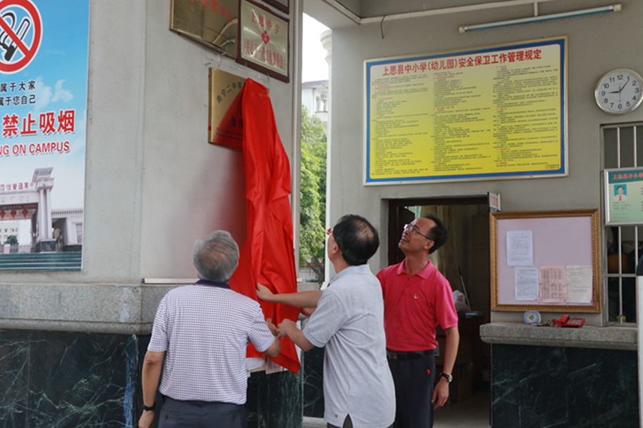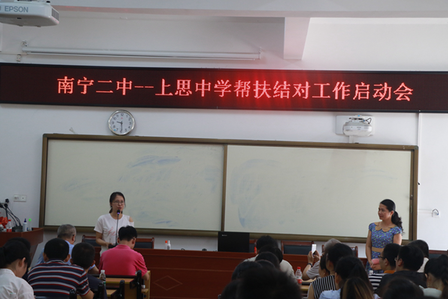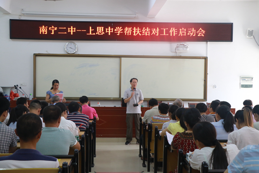 6 月21日,上思中学举行“上思中学——南宁二中教育科研联合体合作学校”揭牌仪式,南宁二中、上思中学双方领导、老师代表和上思中学学生代表共100多人参加了揭牌仪式。